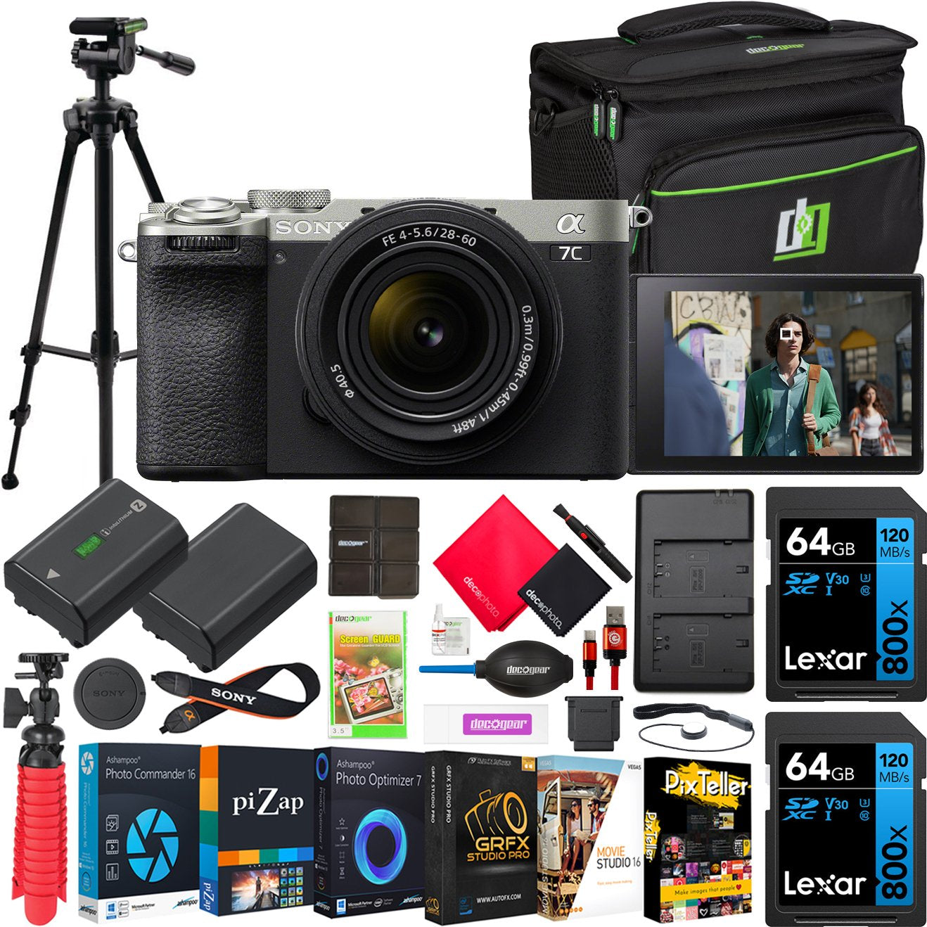 Sony a7C II Full Frame Mirrorless Camera Silver + 28-60mm Lens Accessories Kit Bundle
