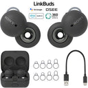- LinkBuds Truly Wireless Earbuds (Gray) with attached supporter