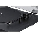The turntable features a belt drive mechanism with an aluminum die-cast platter. Robust yet lightweight, the platter stays stable as it rotates for clearer playback of your music