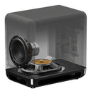Sophisticated round edges represent a single solid block of room-filling sound. The rich materials and minimalist design fits seamlessly into any living room environment.