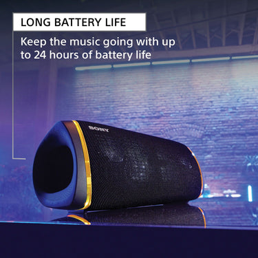 The SRS-XB43 wireless speaker blends deep, punchy bass with clear vocals for that signature festival sound. It's durable and easy to use, too, so you and your friends can focus on enjoying the party.