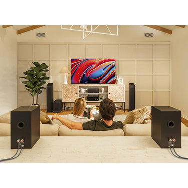 These speakers feature a sleek black finish that blends with most modern interiors. The wood veneer holds its shape over time, helping preserve audio quality - even with changes in temperature and humidity.