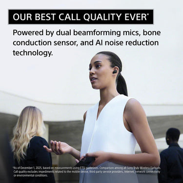 Ultra Clear Call-Quality â Sonyâs best call-quality performance powered by dual beamforming mics, bone conduction sensor, and AI noise reduction technology.