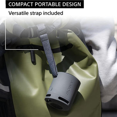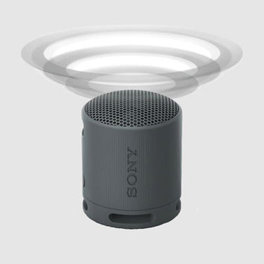 Enjoy big sound with the super-compact SRS-XB100 wireless speaker, offering powerful, clear sound, a waterproof and dustproof design, and up to 16 hours of battery life.