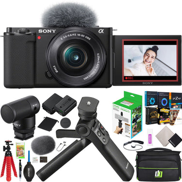 Sony ZV-E10 Mirrorless Vlog Camera Black + 16-50mm Lens + ACCVC2 Vlogger Bundle