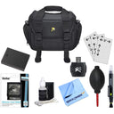 - Includes battery, carrying case, card reader, 3 card memory card wallet, cleaning cloth, 3 camera screen protectors, lens cleaning kit, dust removal blower, and cleaning pen.