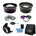 Kit includes: 58mm Wide Angle & Telephoto Lens, Macro Close Up Set, Filter Kit , Dust Blower, Tulip Flower Lens Hood, Cleaning Kit, Memory Card Wallet