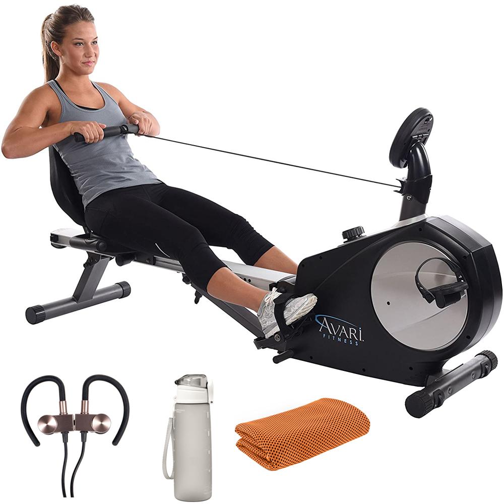 The Avari® Conversion II Rower/Recumbent Bike provides two low-impact cardiovascular workouts in one space-saving machine: cycling and rowing. Whether using the rowing machine to strengthen and tone your total body or the recumbent bike to firm your lower body, this magnetic resistance machine delivers a complete workout that's as hardcore - or not - as you want. To adjust the intensity mid routine, simply turn the grip-edged, 8-resistance-level dial to adjust your pace without interrupting the smooth, quiet workout. Switching the machine is easy - simply pull the pin or lock it in place.