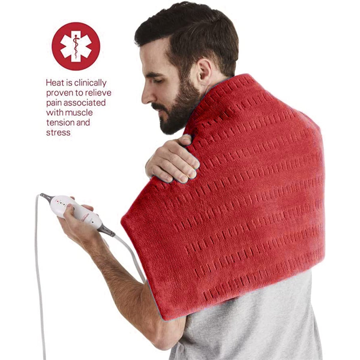The 20 x 24-inch flexible, plush pad offers full coverage of large muscle groups such as the back and legs. The XXL-size pad helps accelerate tissue healing and relax sore muscles associated with muscle tension and stress.