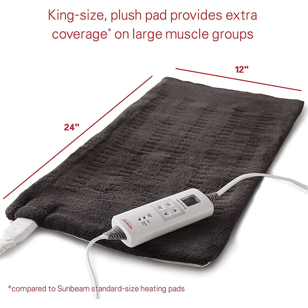 12 x 24-inch premium king-size Sunbeam heating pad provides extra heat coverage* on large muscle groups to deliver fast, soothing heat therapy for common muscle and joint pain.