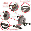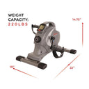 Burn some extras calories during your productive days at work or while watching TV, with the new Sunny Health & Fitness mini exercise bike couch peddler that can be easily used under your work desk due to its portability and size. The pedal exerciser features a reliable and quiet magnetic system, with 8 Level micro tension knob that allows for a moderate or intense resistance. The LCD displays Time, Speed, Distance, ODM, Calories. This Mini Exercise peddler comes with safety pedal straps, and if youāre in the mood for an upper and lower body workout the pedals work well with both feet and hands. The Sunny Health & Fitness Magnetic Mini pedal exerciser is expertly designed for maximum performance and portability, with a maximum user weight of 220 Lbs.