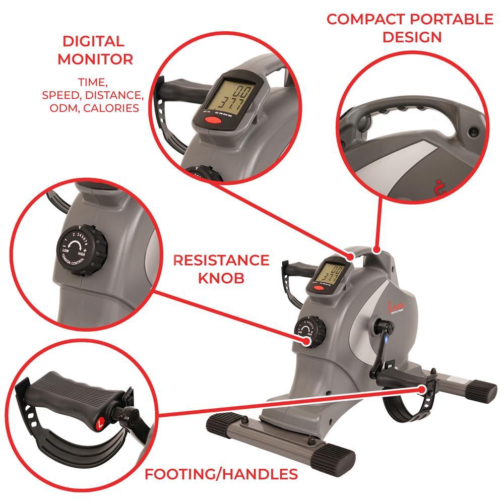 Sunny Health and Fitness SF-B0418 Magnetic Mini Exercise Bike with Digital Monitor and Level Resistance