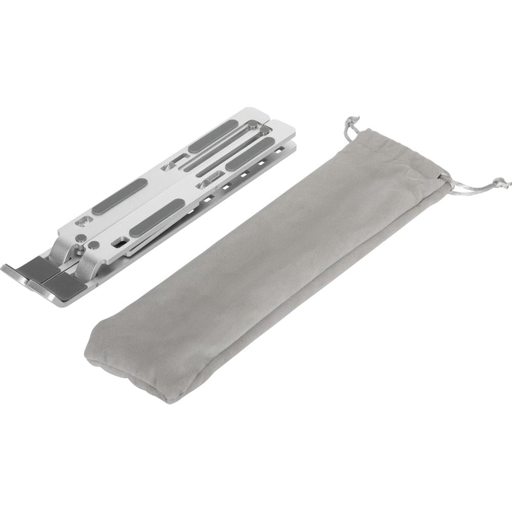 Stylish and durable; the stand is made of high-quality aluminum with high heat reduction to help prevent your device from overheating. Compact and lightweight; the stand folds flat for easy portability and storage. A bonus grey pouch is also included for convenient carrying.