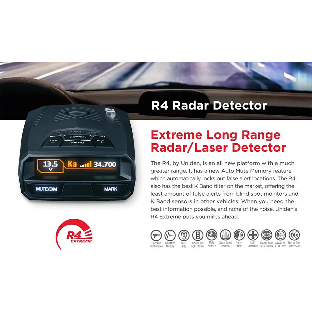 - Uniden R4 Extreme Long Range Radar Laser Detector GPS, 360 Degree, DSP, OLED Display
