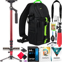 Vivitar ST-6000-RED 59" Video Photo Stabilizer Tripod + Deco Photo Photography Bundle