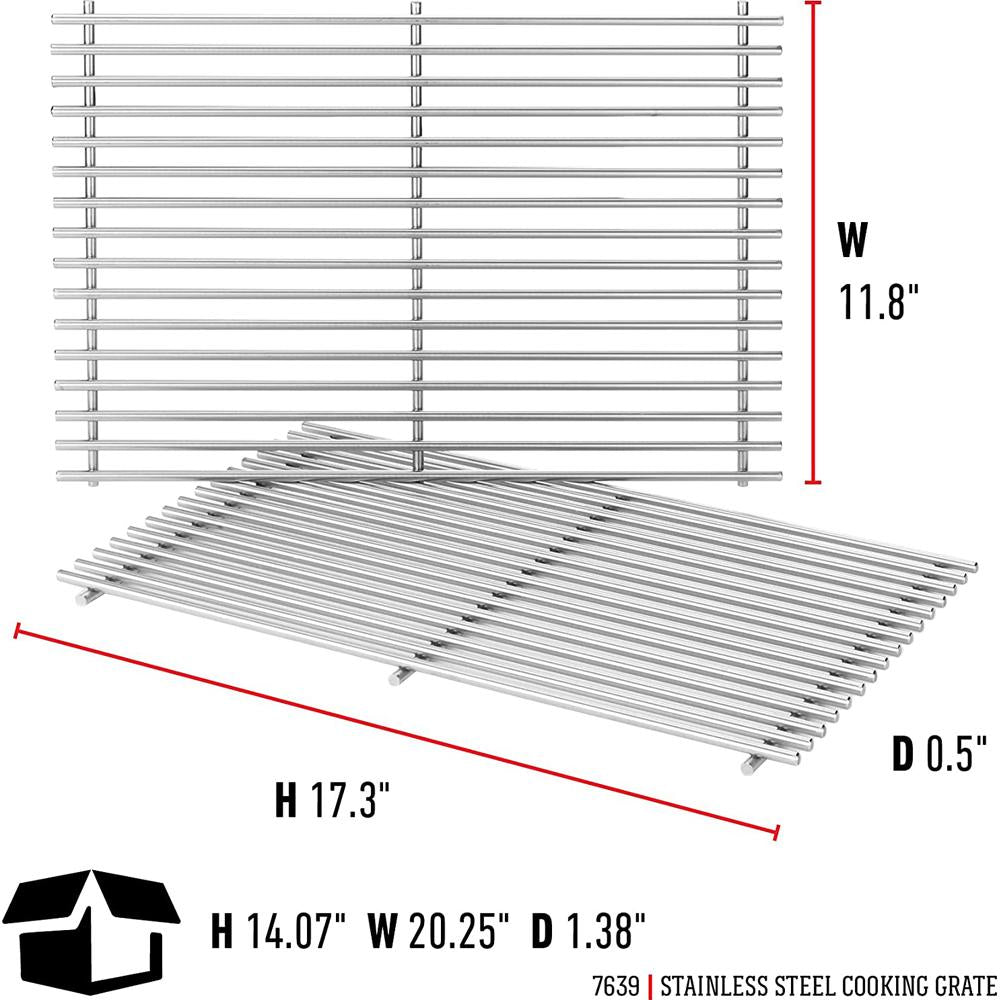 Set of 2 Stainless Steel Cooking Grates. Please double check the specs and fits info to ensure that you're choosing the best part for your grill.
