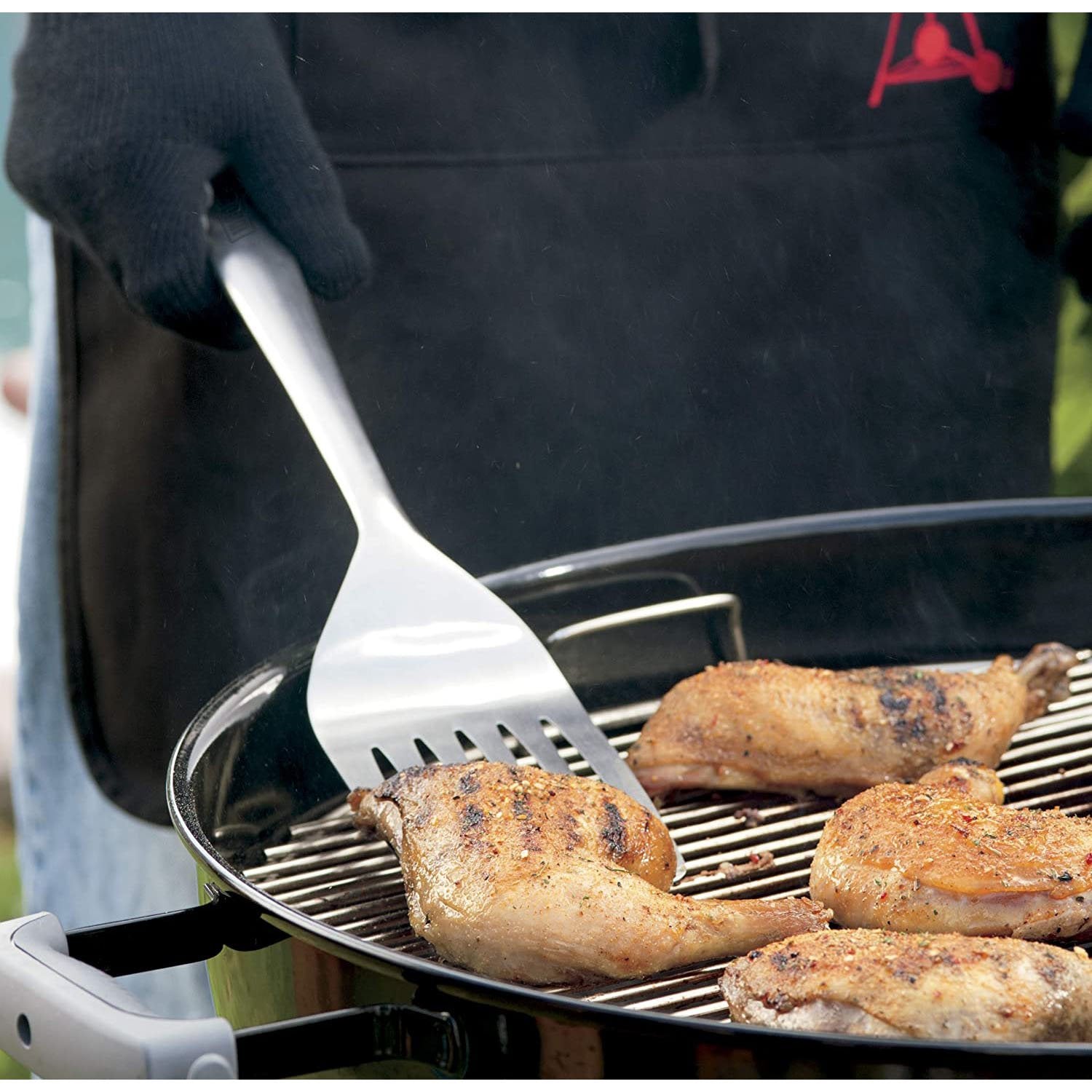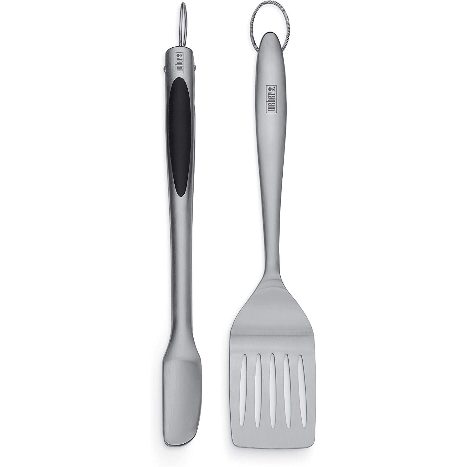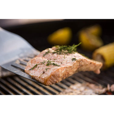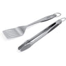 A spatula and tongs go together like salt and pepper. Whether flipping burgers, turning hotdogs, or transferring beer can chicken from tray to cooking grates, the spatula and hands-free locking tongs in the Deluxe Tool Set are two of your everyday grilling essentials.