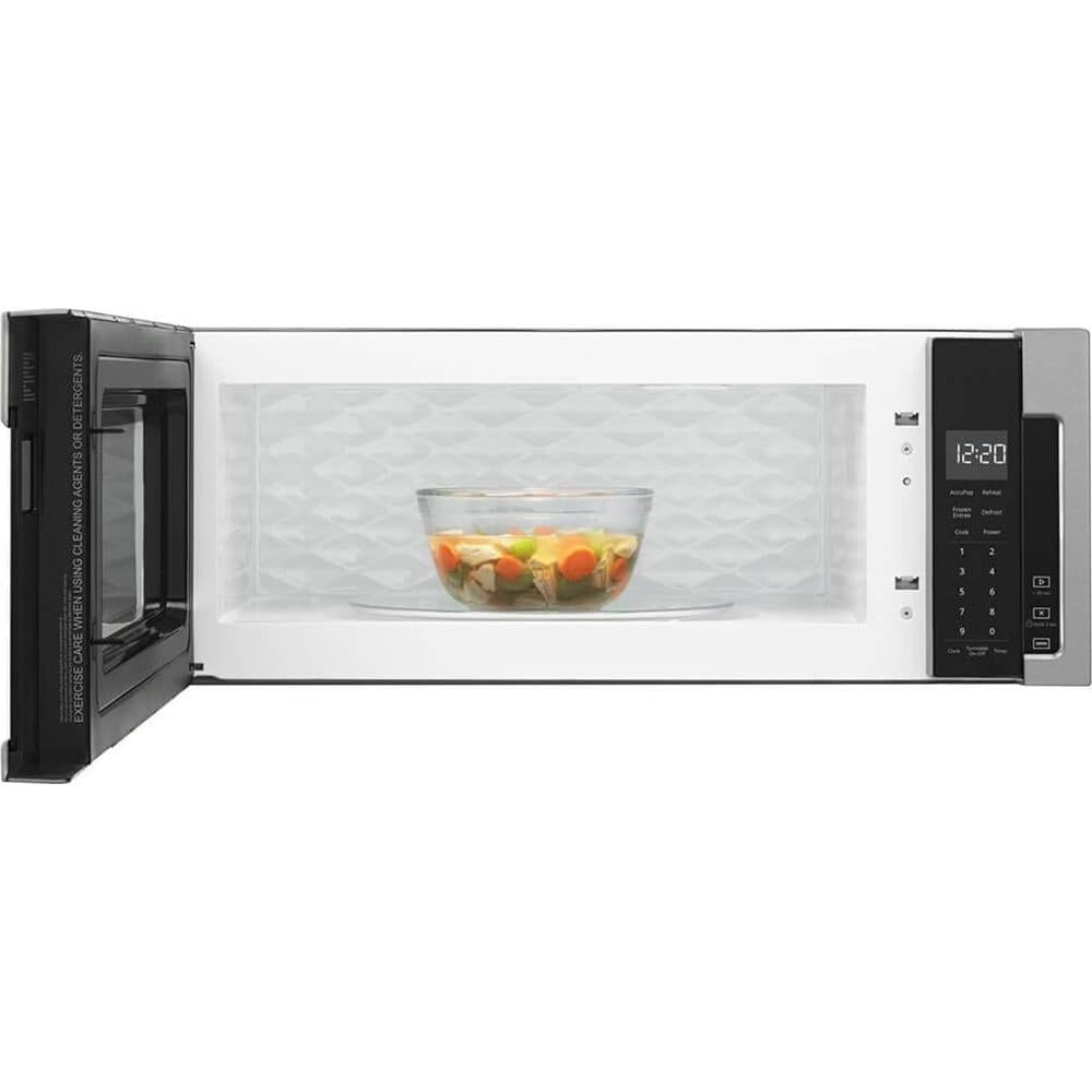 Fit tall glasses, wide plates and big bowls in this low profile microwave that still has enough room for all the essentials with 1.1 cu. ft. of purposeful capacity.