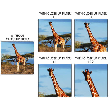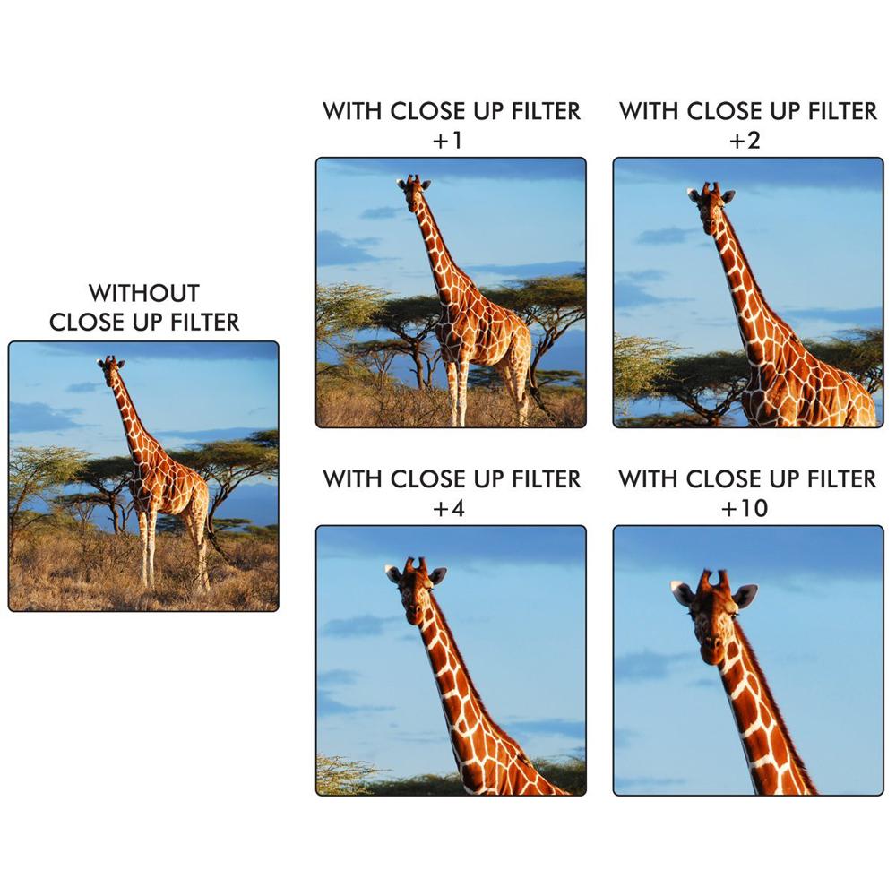 - 4 piece close-up filter set ( includes: +1, +2, +4 & +10). These filters can be used in any combination to achieve the exact desired macro results.