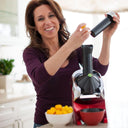 - Easily create yummy vegan tasting treats by adding any combination of chocolate or fruits to the chute for a smooth "ice-cream" Like taste.